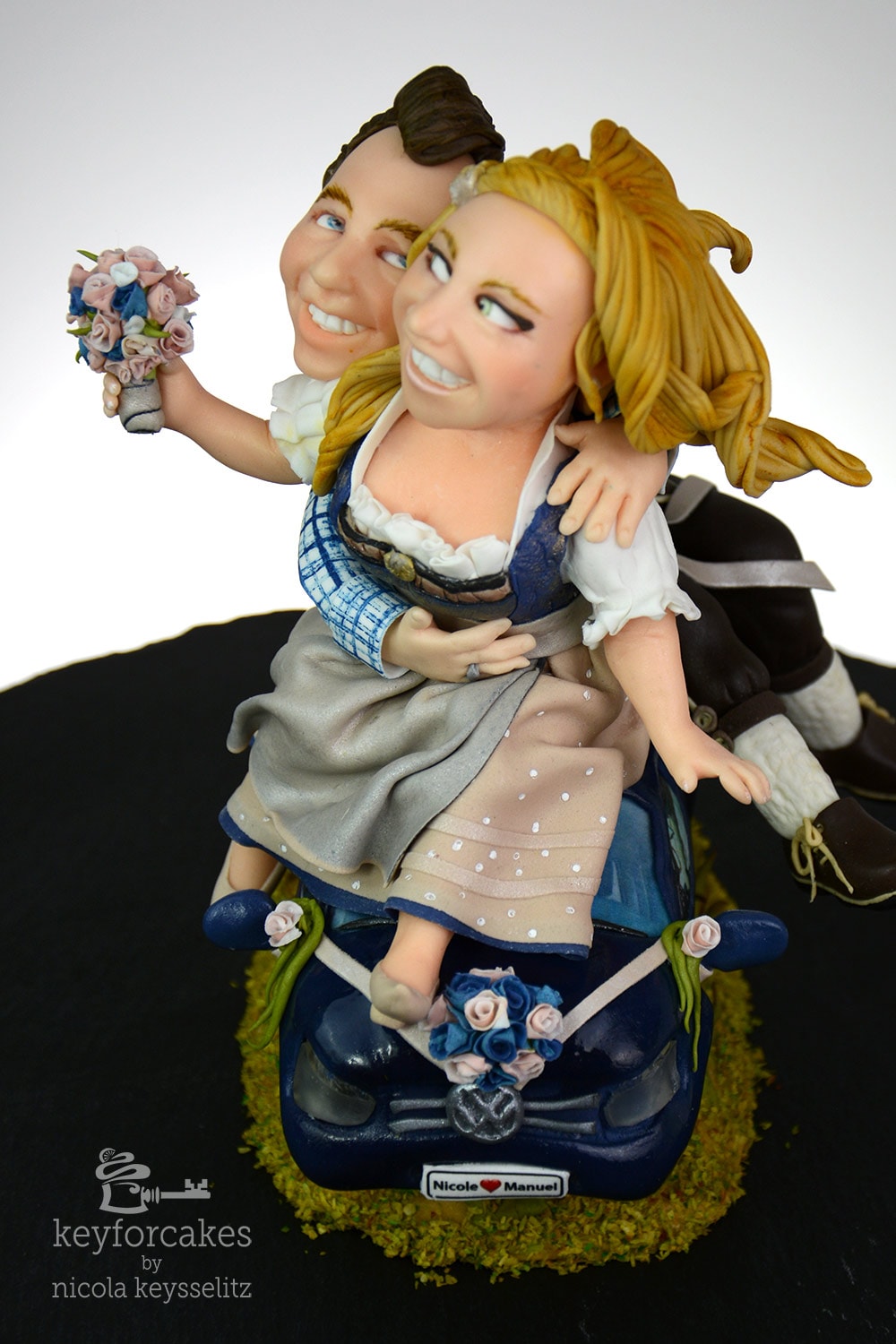 Dieser Totentopper liegt schon ein paar Monate zurück aber ich wollte ihn Euch nicht vorenthalten. Die Braut war eine ehemalige Schülerin von mir die per Messenger mal zaghaft anfragte ob ich Figuren auf Bestellung mache. Zaghaft, da Ihr Zukünftiger eigentlich keinen Caketopper wollte, wenn, dann müsse es schon etwas sehr persönliches sein.