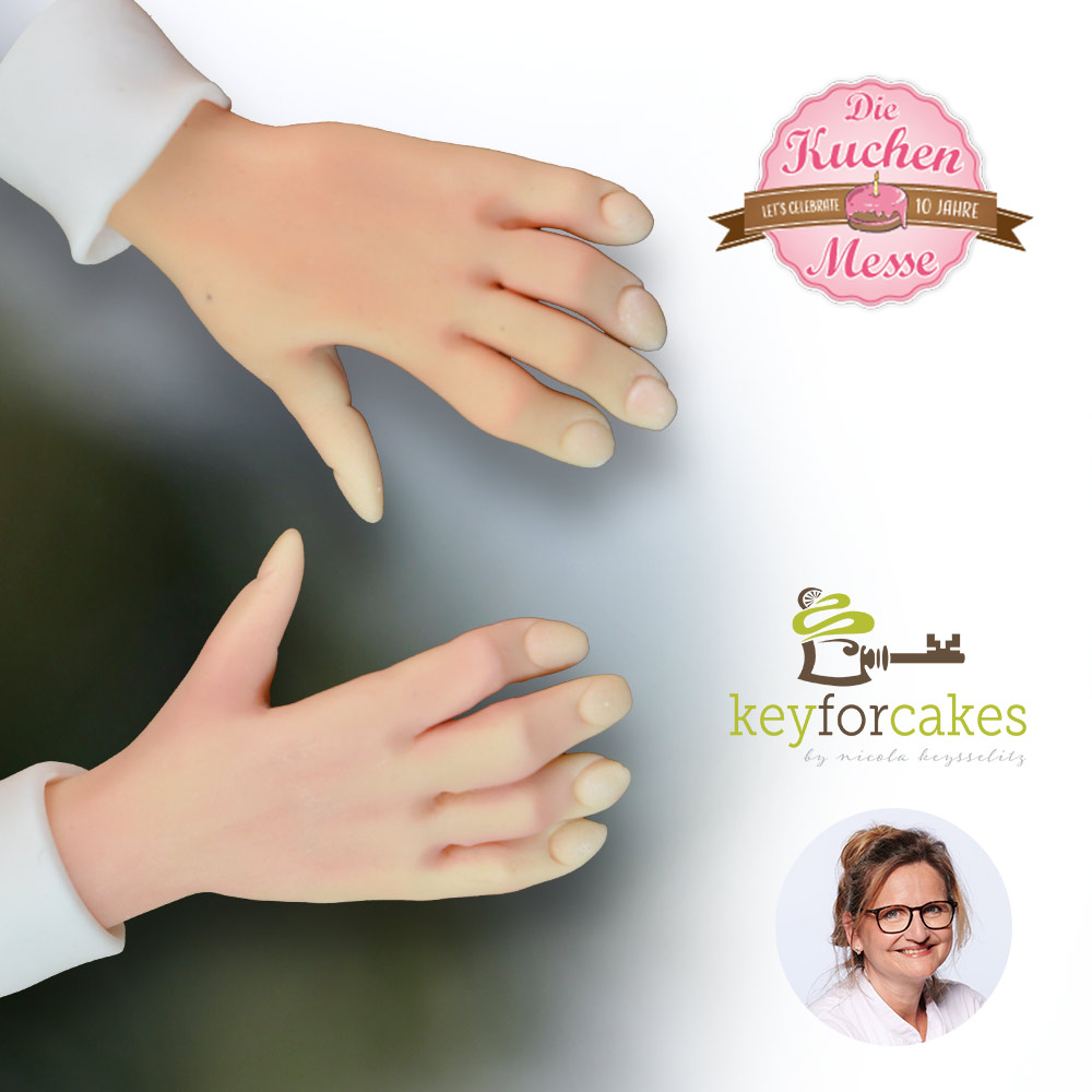 Hände gehören zu den schwierigsten Details beim Figurenmodellieren – doch mit den richtigen Techniken gelingt es ganz einfach. In diesem 1,5-stündigen Workshop zeige ich Dir Schritt für Schritt, wie Du kleine, anatomisch korrekte und ausdrucksstarke Hände aus Fondant modellierst. Dabei lernst Du, worauf es bei den Proportionen ankommt und wie Du feine Details herausarbeitest. Dieses Wissen kannst Du direkt zuhause auf Deine eigenen Figuren übertragen und ihnen mehr Lebendigkeit und Ausdruck verleihen.