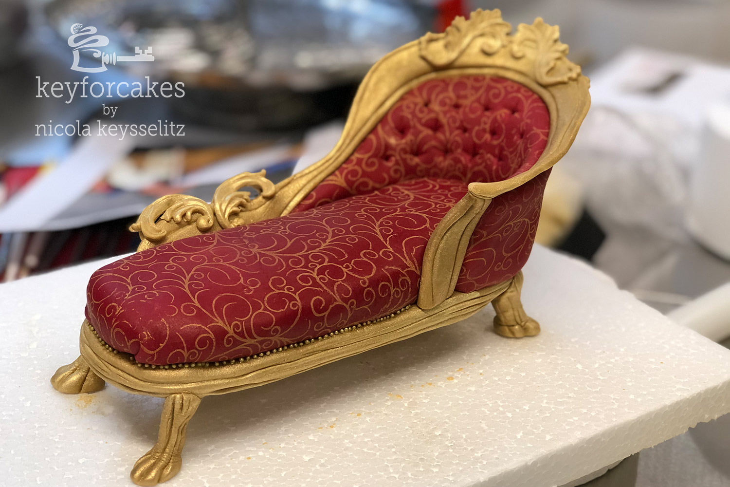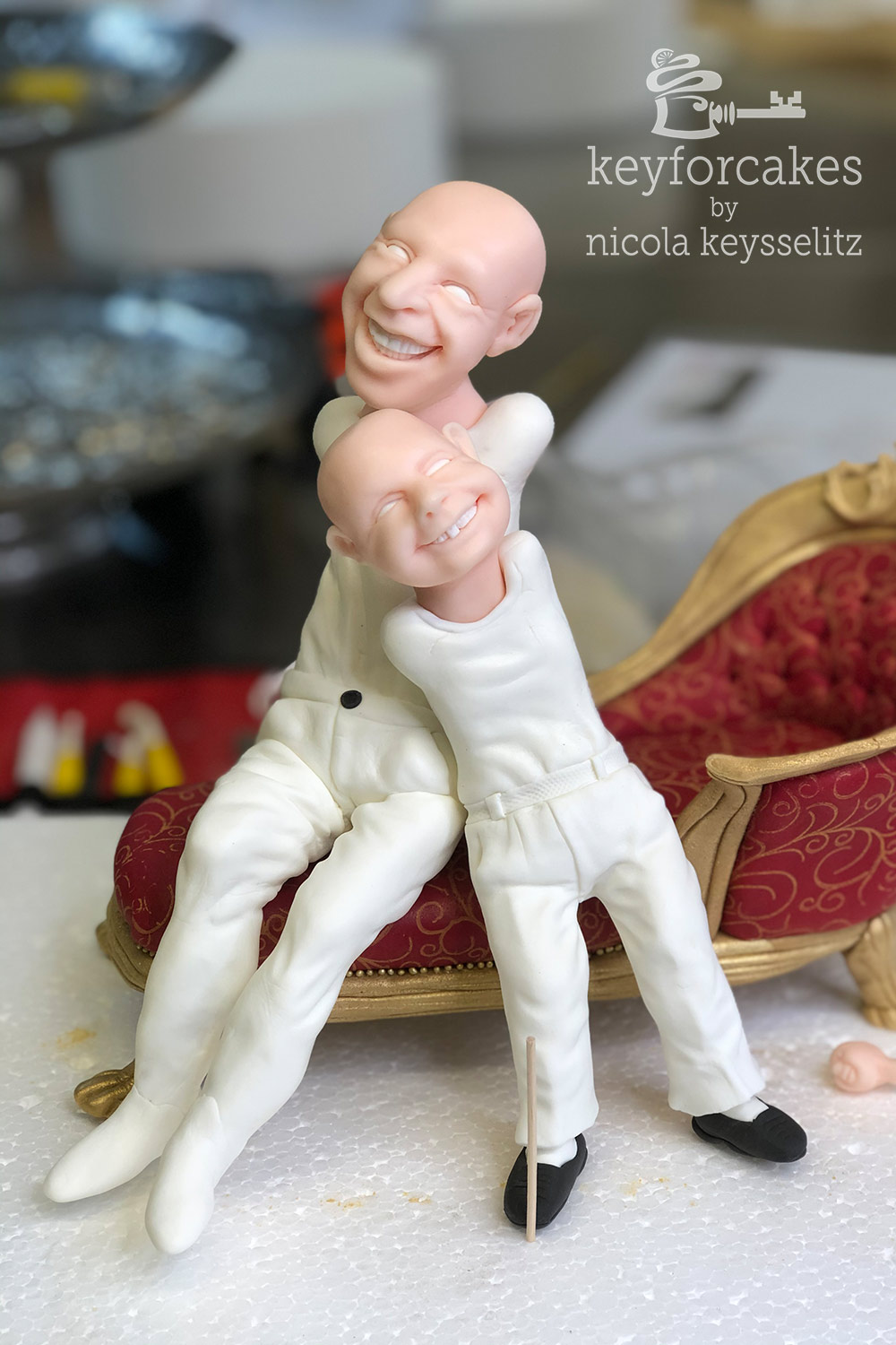 Als ich mit dem Modellieren anfing, sah ich mir das Foto lange an, und immer wieder fragte ich mich worauf die beiden saßen. Der Umhang war so groß, dass man das wirklich nicht erkenne konnte. Daraufhin fragte ich Ines, und ich bekam ein erneutes Foto… eine Barocke Chaiselongue, na, dann mal los!