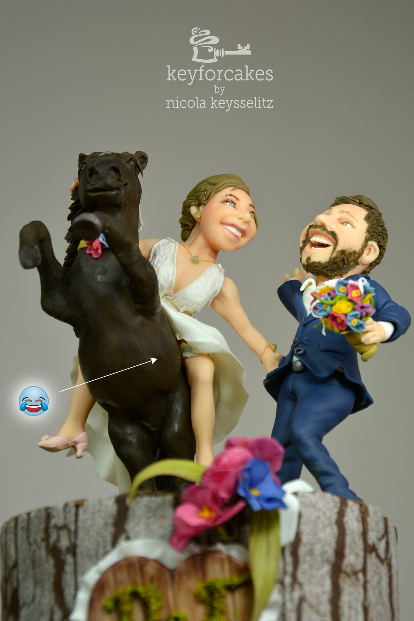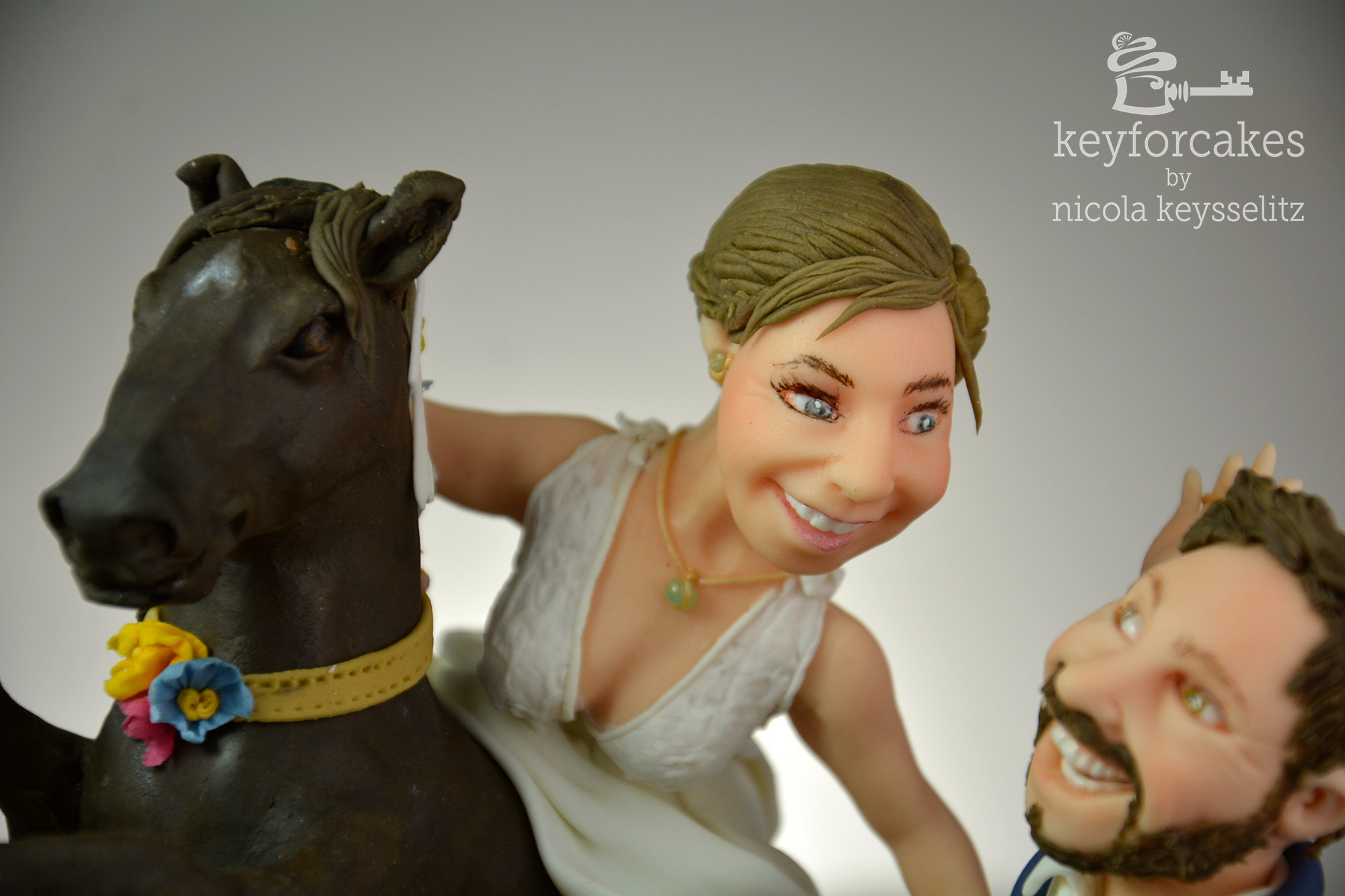 Die Eltern waren hin und weg, so eine persönliche originelle Gestaltung war genau das was sie sich für die Hochzeitstorte ihrer Tochter vorgestellt hatten… also nicht die Braut als schwangere Frau, sondern die Braut, begeisterte Reiterin, hoch zu Ross 😉